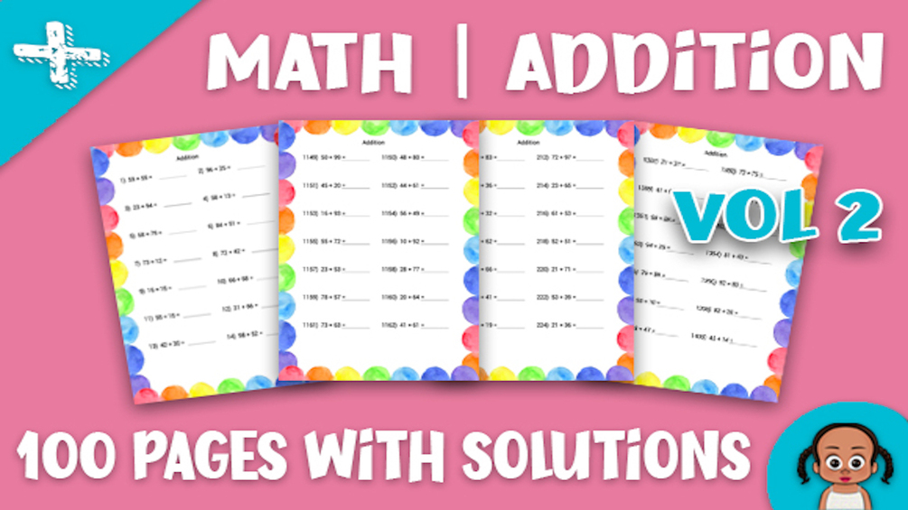 Math Worksheets | Addition + Solution Vol 2 - 100 Pages