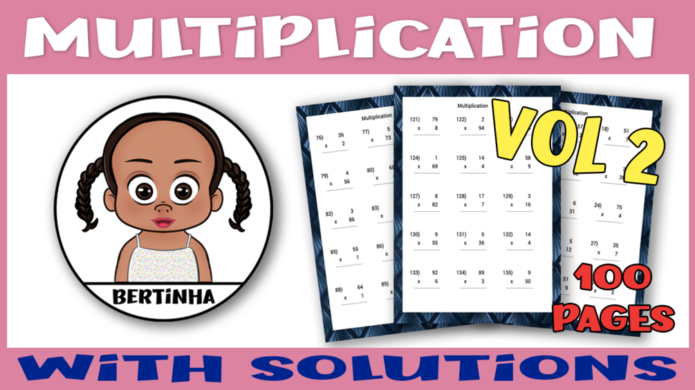Volume 2 of our 100 pages to practice multiplication with solutions. You’ll have 100 days of practice.